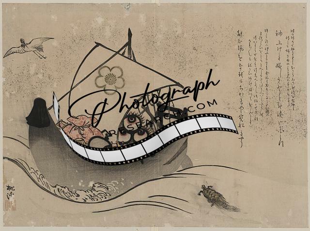 Tsuru kame to takarabune,Tokei Niwa,Photo of Ukiyo-e,Japan,Ship,Turtles,Cranes
