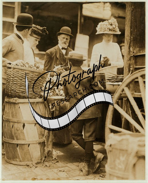 Title: Karl Witklwskr, 812 Walnut St., Market vender. 11 years of age. 1 year at work. Works of own choice. Earns percentage of money received from stand, amounting to an average of 50 cents a week. Money not needed at home. Works of own volition. Investigator, Edward F. Brown. Location: Wilmington, Delaware / Photo by Louis W. Hine, May, 1910.