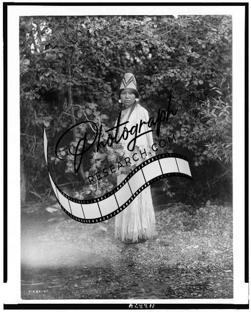 A fair maiden,Nespelim Indian woman,edge of water,trees,Washington,WA,c1905