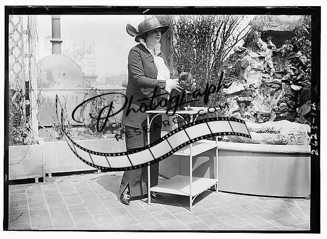 Mrs. Fred Beach,walking through a field of flowers,smiling,1910-1915
