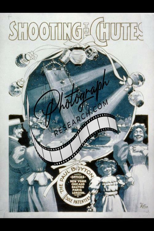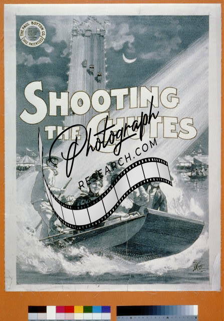 Shooting the Chutes,1896,boat full of people enjoying a ride on the chute-slide