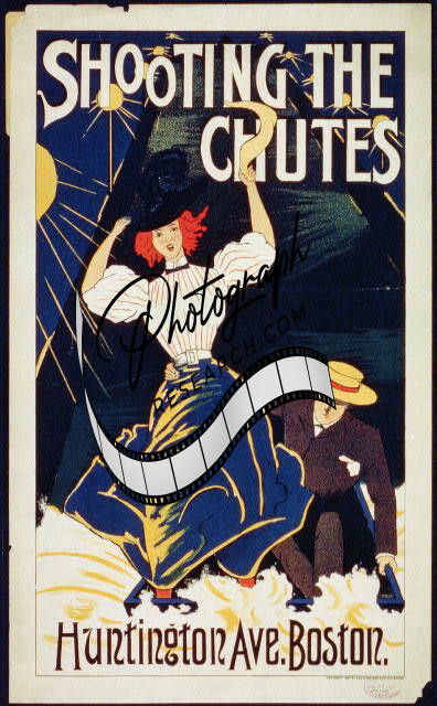 Shooting the Chutes,Huntington Ave,Boston,1897,couple sliding down water chute