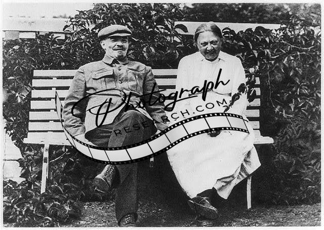 Vladimir Il'ich Lenin,N.K. Krupskaya in the garden at Gorki,on bench,Russia