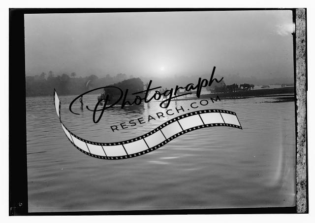 Iraq,sunset,river,& boats with reeds or hay,Middle East,American Colony Photo