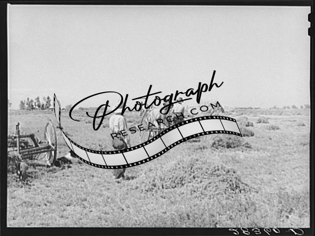 Title: Haying scene on the farm on FSA (Farm Security Administration) borrower Andy Bahain near Kersey, Colorado