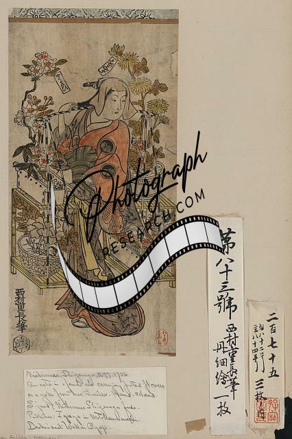 Hanauri,Shigenaga Nishimura,Photo of Ukiyo-e,Japan,Woman Selling Flowers,c1725