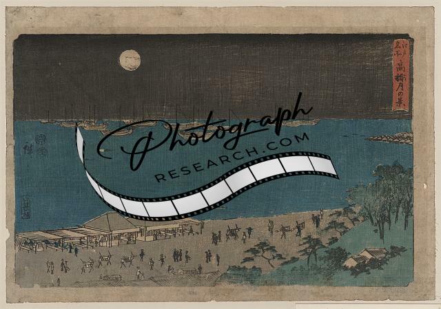 Takanawa tsuki no kei,Hiroshige Ando,Photo of Ukiyo-e,Japan,Moon Shining,Boats