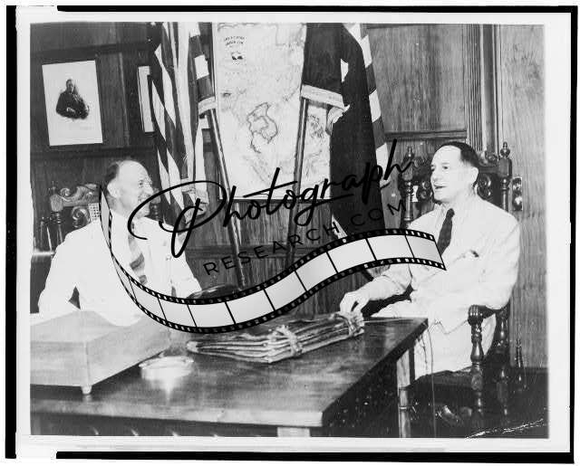 Douglas MacArthur,seated at desk with Francis Bowes Sayre,1941,Flags,Telephone