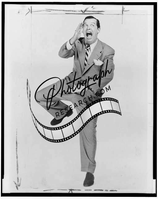 Milton Berle,posed on one leg,with mouth wide open,Mendel Berlinger,Comedian