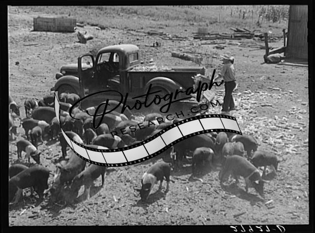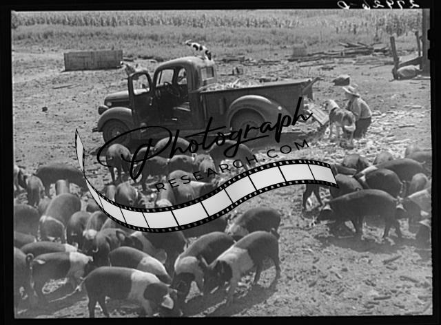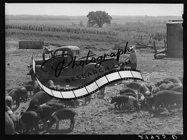 Title: Bud Kimberley calling the hogs. Jasper County, Iowa