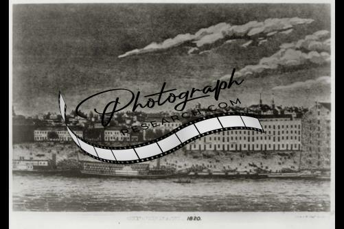 Cincinnati waterfront from the Ohio River,1820,buildings,ship