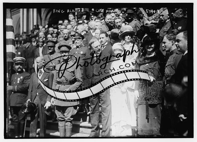 King Albert,royalty,City Hall,military personnel,soldiers,Bain News Service
