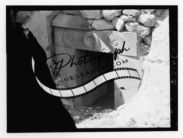 Ajlun district,Stone door at M'keis showing carved lintel,Um Qays,Jordan,c1925