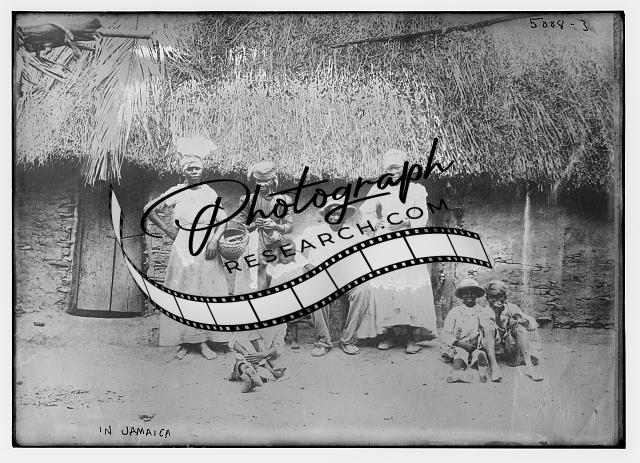 Structures,thatched roofs,family,people,children,women,Jamaica,Bain News Service