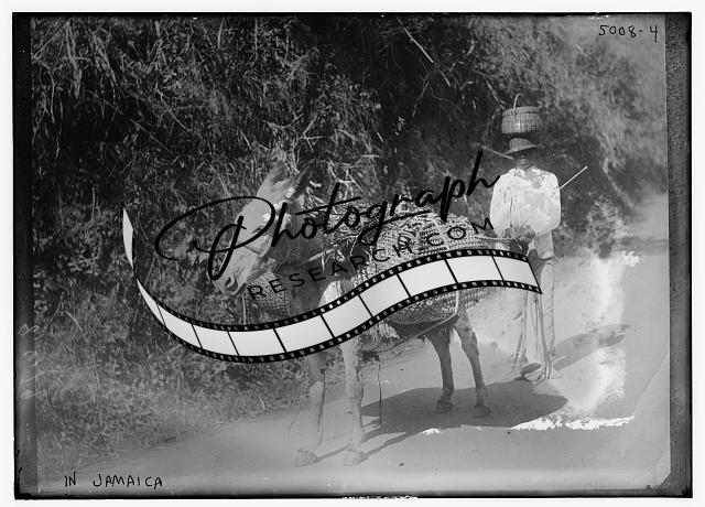 Donkeys,animal transportation,streets,roads,baskets,Jamaica,Bain News Service