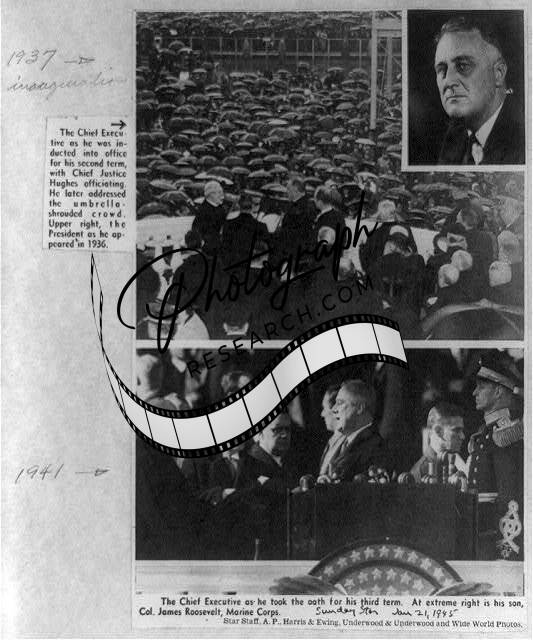 President Franklin D Roosevelt,taking,oath,office,second,third terms,crowds,1945