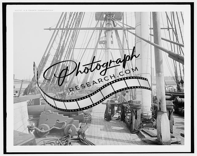 US frigate Constitution,American warships,decks,cannons,artillery,weaponry,c1910
