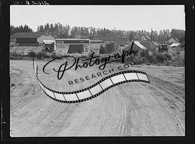 Title: Squatter camp entering potato town. Malin, Klamath County, Oregon. General caption number 64