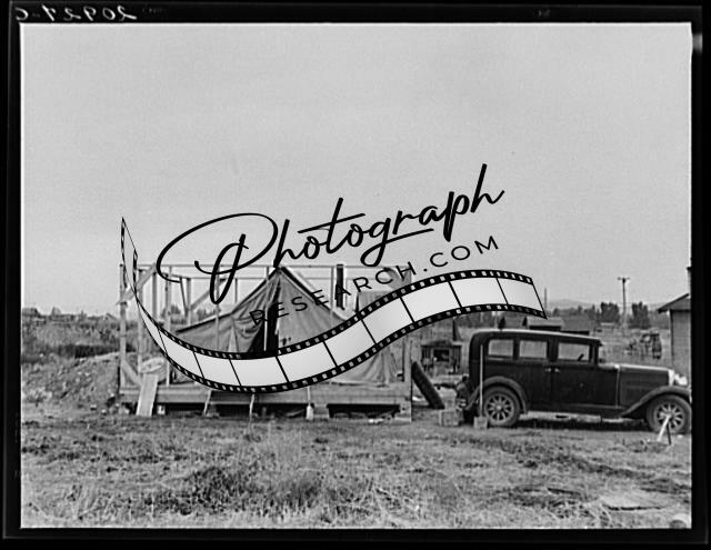 Title: Family living in tent while building the house around them. Near Klamath Falls, Klamath county, Oregon. See general caption number 47