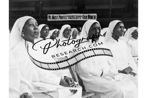 KKK mascots flank dragon, Two children wearing Ku Klux Klan robes and hoods. Dr. Samuel Green, Ku Klux Klan Grand Dragon, at an initiation ceremony in Atlanta, Georgia.