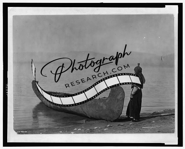 On the shore of the lake--Kutenai,Kootenai Indian,Canoe