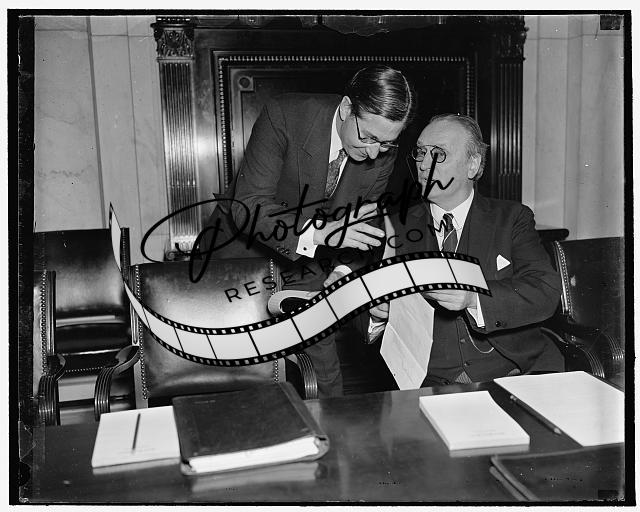 Title: Knits while husband burns. Washington, D.C., Mar. 22. Mrs. Burton K. Wheeler, wife of Senator Wheeler of Montana calmly knits while her husband is burning up at the cross examination of his fellow senators as he took the stand today before the Senate Judiciary Committee. The senator is opposed packing the Supreme Court by legislation, 3/22/1937