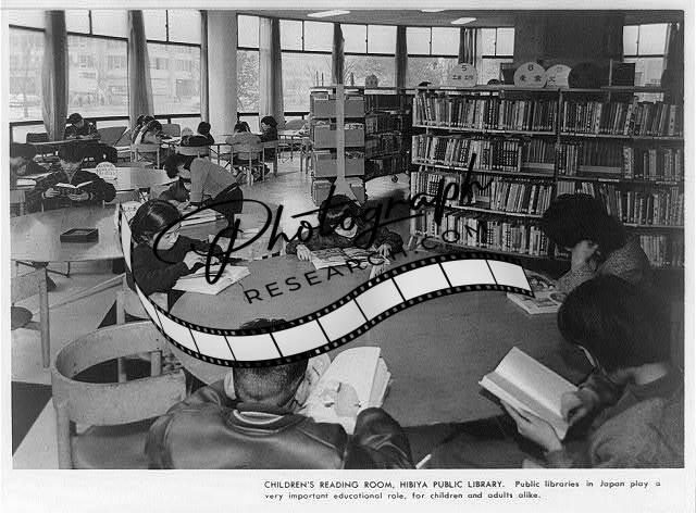 Children's reading room,books,tables,chairs,Hibiya Public Library,Japan,1963