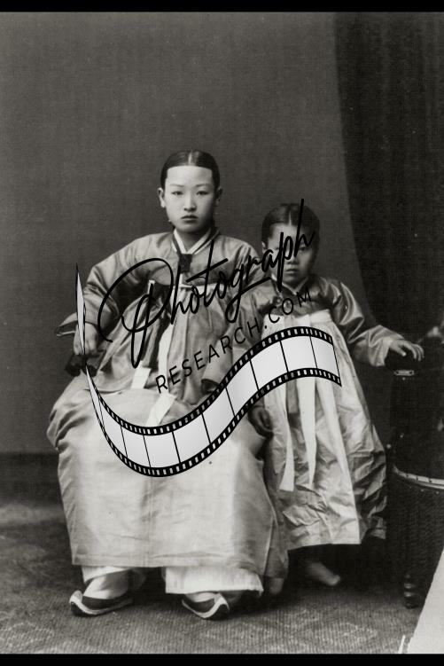 Korea,East Asia,1910-1920,Korean woman & her daughter,old fashioned costumes