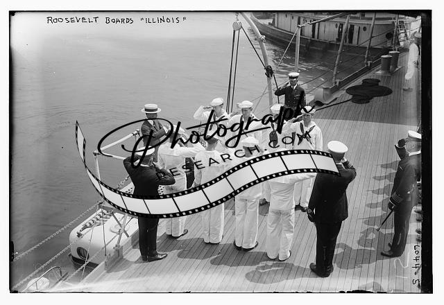 Theodore Roosevelt received,ILLINOIS,boats,ship,military personnel,officers,deck