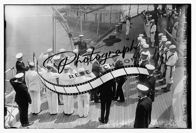 Theodore Roosevelt received,ILLINOIS,boats,ship,military personnel,officers,deck