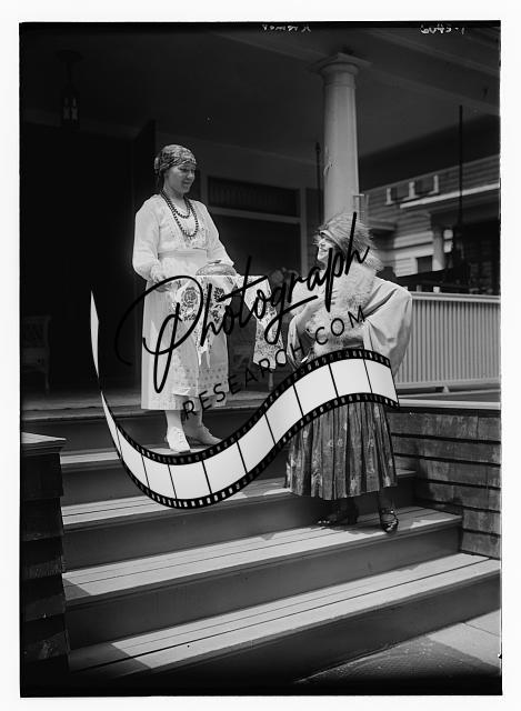 Kremer,women,porches,railings,dresses,clothing,columns,windows,Bain News Service