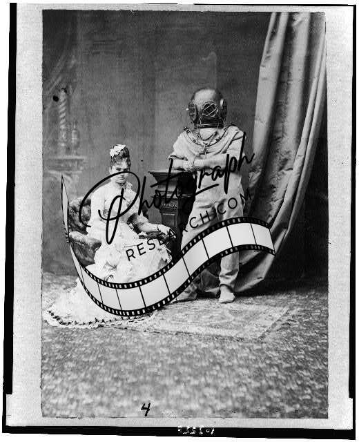 Miss Bernhardt,Ocean Express,diving suits,deep sea,gear,portraits,chairs,c1880