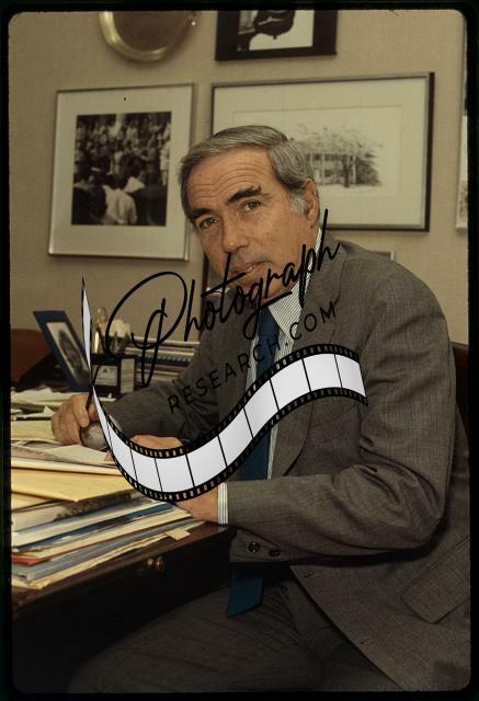 Felix Rohatyn, half-length portrait, seated at desk in office