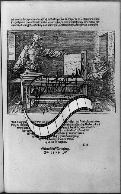 Draftsman drawing lute,perspective projections,page,lGermany,Albrecht Durer,1525
