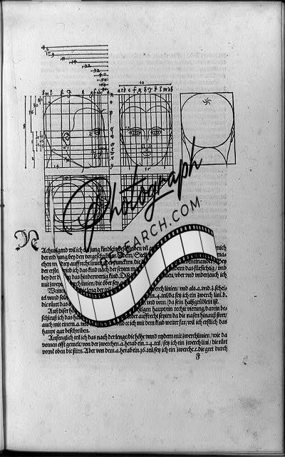 Views,heads,proportions delineated,perspective grids,text,geometry,A Durer,1528