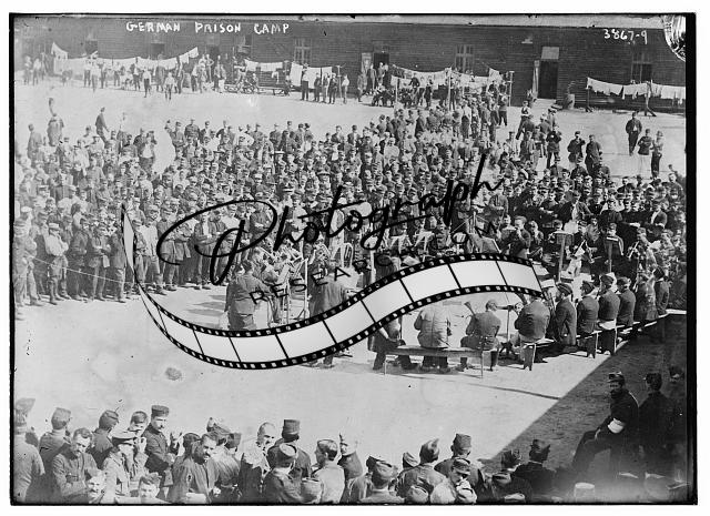 German Prison Camp,people outside,band,musical instruments,Bain News Service