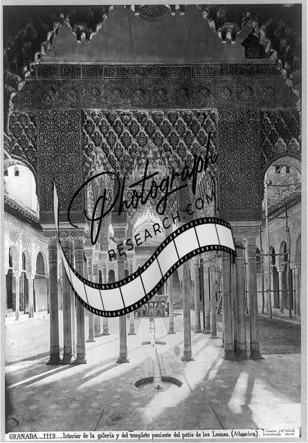 Interior,galeria,templete poniente,patio,courtyards,Leones,Alhambra,Granada,1890