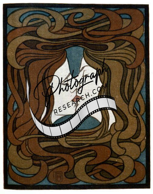 Two faces kissing with entwined art-nouveau style hair / Peter Behrens,1898?