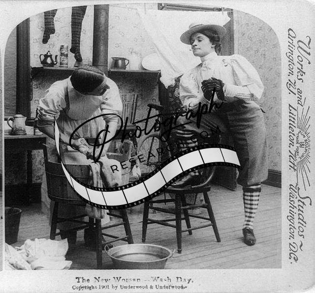 The New Woman,Wash Day,Laundry,Women's Rights,Knickers,Smoking Cigarette,c1901