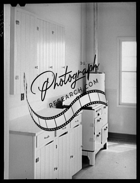 Title: Shelf and hooks in one of the row shelters for migratory workers at the migratory labor camp at Sinton, Texas