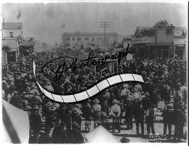 Drilling Contest,Labor Day,Goldfield,Nevada,c1906,Holiday,people sit on rooftops