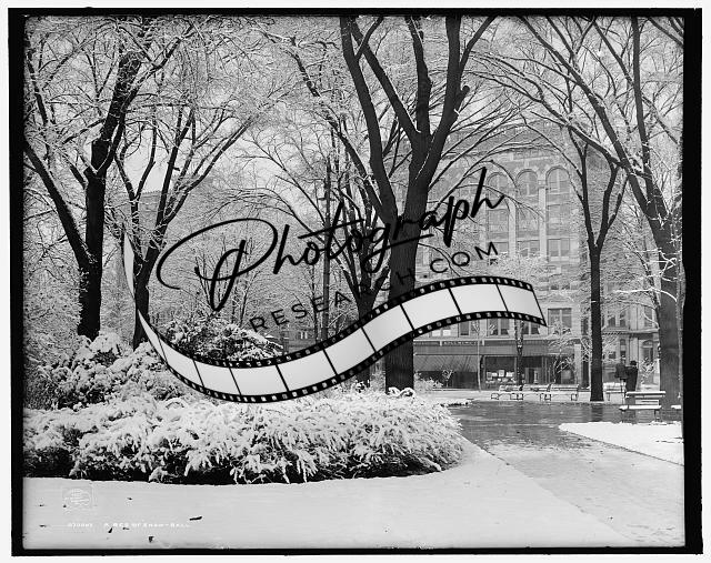 Bed,snow-ball,parks,winter,trees,paths,Detroit Publishing Company,Michigan,c1907