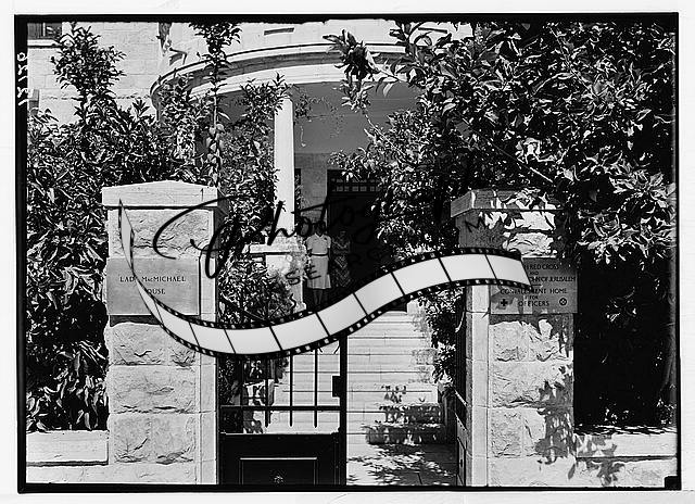 Title: Lady McMichael House [i.e., MacMichael] (Knights of St. John's Br. Red Cross, convalescent house for officers). Group on the steps (Gen. Wilson[?])