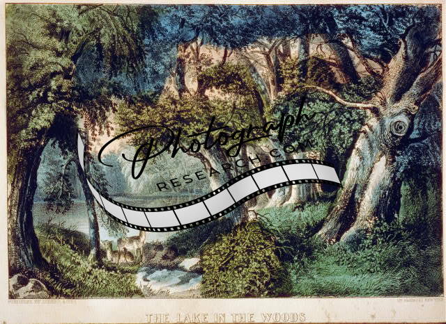 The lake in the woods,1856-1907,Currier & Ives,deer,water