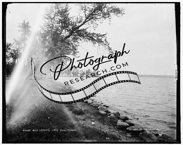 Boat landing,waterfronts,shore,docks,building,Lake Chautauqua,New York,NY,1880