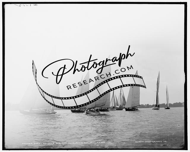 Start,free for all race,yachts,boats,regattas,sailing,races,Put-in-Bay,Ohio,1904