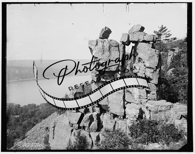 Devil's Lake,cliffs,mountains,trees,Wisconsin,WI,Detroit Publishing Company,1880