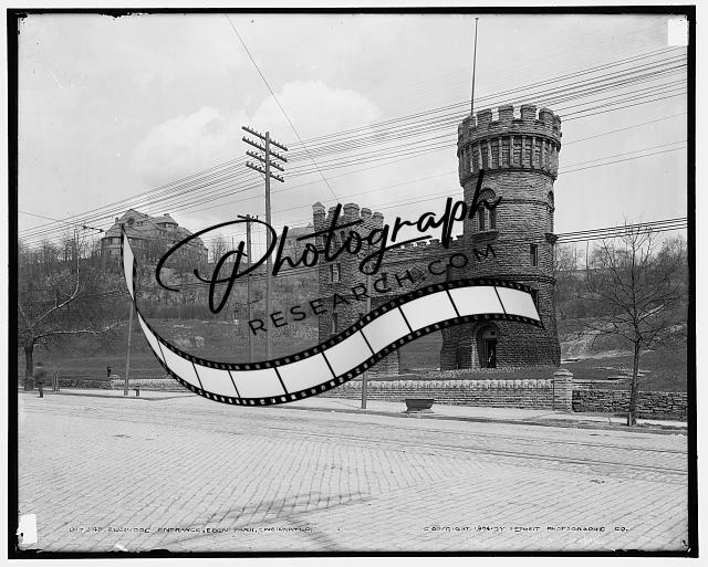 Elsinore Tower entrance,gates,stone structure,Eden Park,Cincinnati,Ohio,OH,c1904