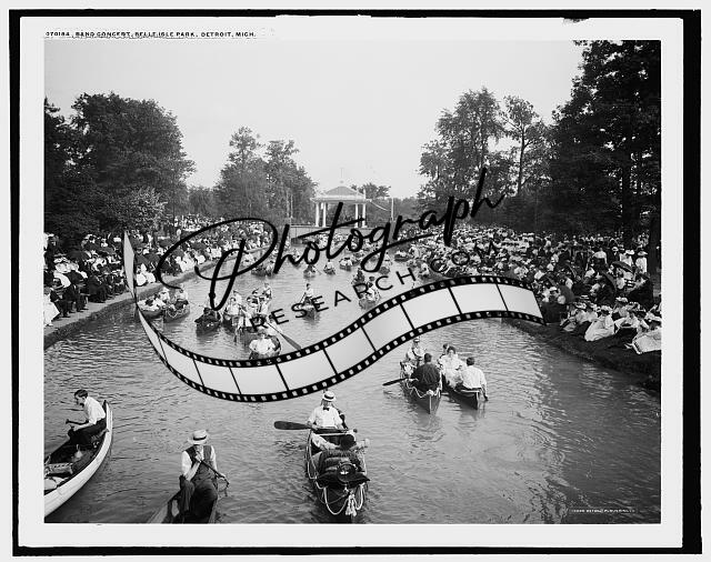 Band concert,canals,boats,crowds,Belle Isle Park,Detroit,Michigan,MI,c1907