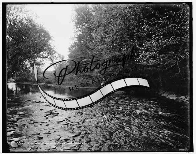 Fishing,Genegantslet Creek,water bodies,rocks,Smithville Flats,New York,NY,1890